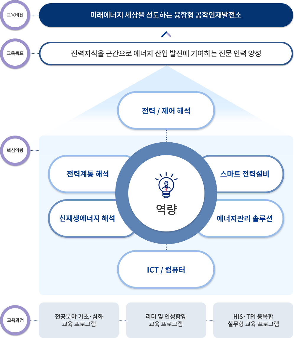 • 전력지식을 근간으로 에너지 산업 발전에 기여하는 전문 인력 양성